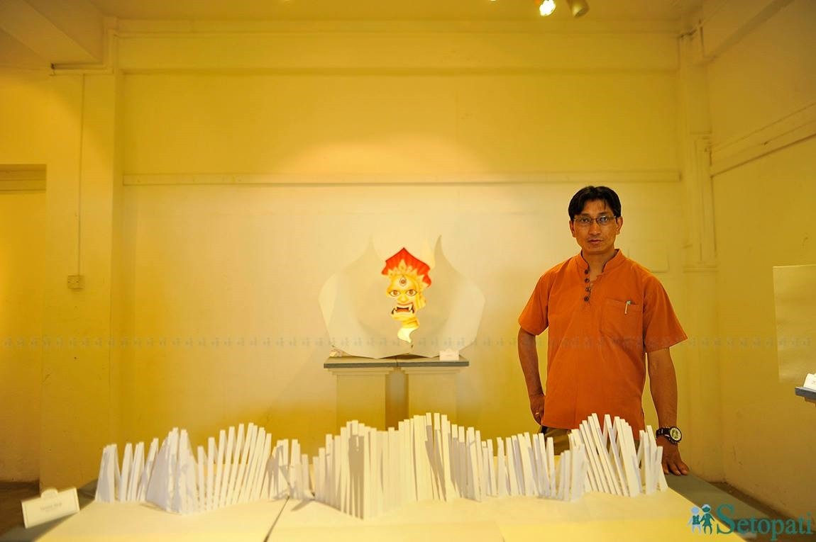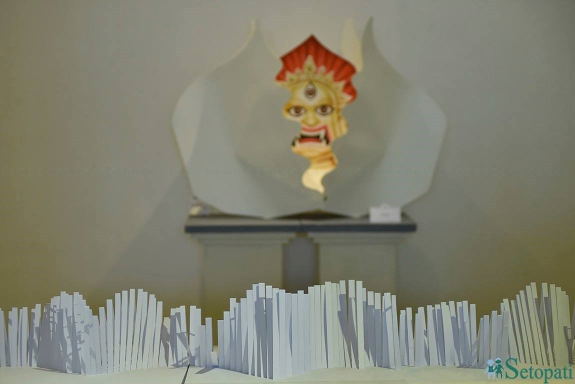 यी बीचमा देवेन्द्र पाण्डेको कला अन्यभन्दा भिन्न छ। ‘पप अप’ नामाकरण गरिएको उनको कलामा कागजको क्राफ्टहरू छन्। यी क्राप्टमार्फत् उनले नेपालको सांस्कृतिक सम्पदा अनि आधुनिकीकरणलाई समेटेका छन्। ‘अरिगामी’ कलाजस्तै देखिने उनको क्राफ्ट थ्री डाइमेन्सनल छन् र ग्रिटिङ जसरी फोल्ड पनि गर्न मिल्छन्।