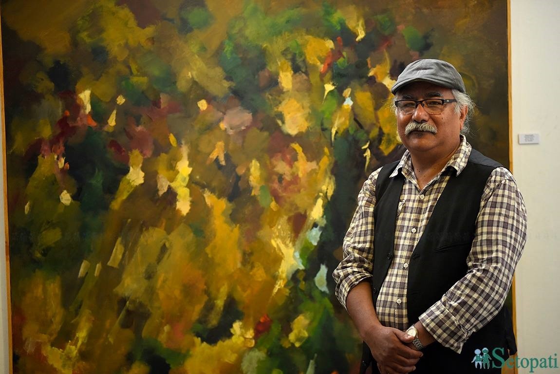 बुधबार प्रदर्शनीमा भेटिएका पाका कलाकार सरद रन्जितको दुई पेन्टिङ पनि प्रदर्शनीमा छन्। इलुस्ट्रेसन, कार्टुन लगायतमा लामो समय बिताएका उनले ‘डान्सिङ कलर्ज’ सेरिजमा ‘एब्स्ट्रयाक्ट’ पेन्टिङ गरिरहेका छन्।