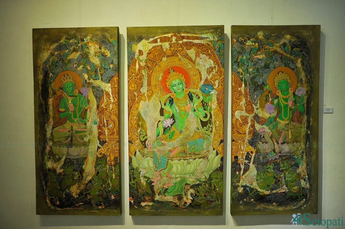 योसँगै घोडाको पेन्टिङ बनाएर पहिचान बनाएका पाका कलाकार शशी शाहको ‘प्यारानोएड हर्स’, सारदमान चित्रकारको ‘इन्टरएक्टिभ आर्ट’, कृष्ण मानन्धरको ‘रक सेरिज’ लगायतका ८० कला प्रदर्शनीमा देख्न सकिन्छ।
