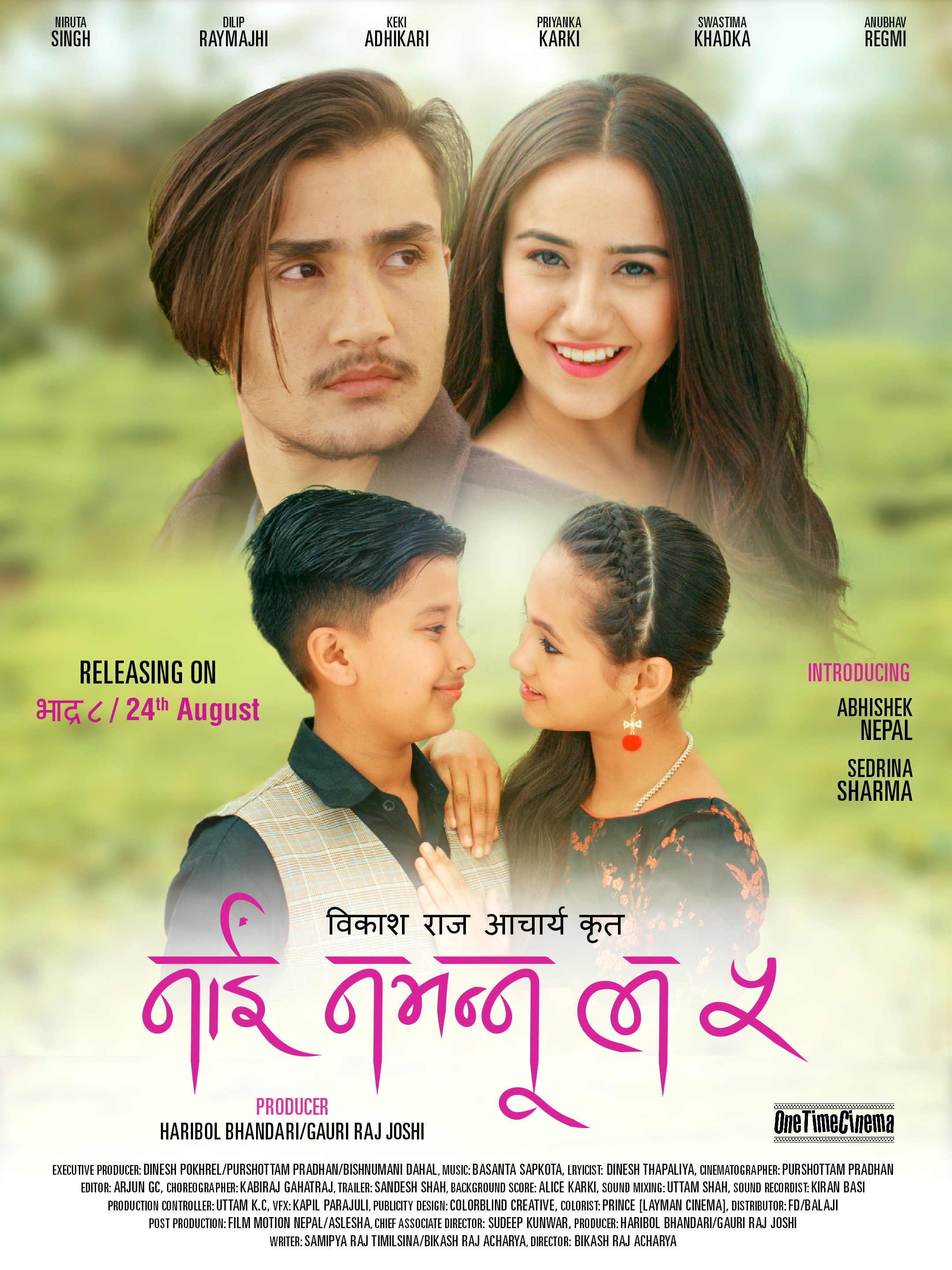 सार्वजनिक पोस्टरमा फिल्मबाट डेब्यू गर्न लागेका अभिषेक नेपाललाई अभिनेत्री स्वस्तिमा खड्कासँग देख्न सकिन्छ भने बाल कलाकार अनुभव रेग्मीलाई अर्की डेब्यू बाल कलाकार सेड्रिना शर्मासँग देख्न सकिन्छ।