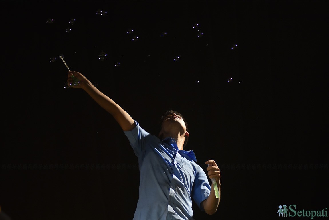 आफूभन्दा टाढा होस्टलमा राख्छन्। घण्टौं बस स्टपमा कुराउँछन्। अनि त बालबालिकाको मनोविज्ञानमा यस्ता कुरा खेल्न थाल्छन्, ‘म पनि ठूलो भएपछि तपाईंलाई होस्टलमा राख्छु।’ टेकुस्थित कौसी थिएटरमा नाटक ‘मिस्टर फक्स एण्ड द स्कुल ब्वाइ’ मञ्चन भइरहेको छ।