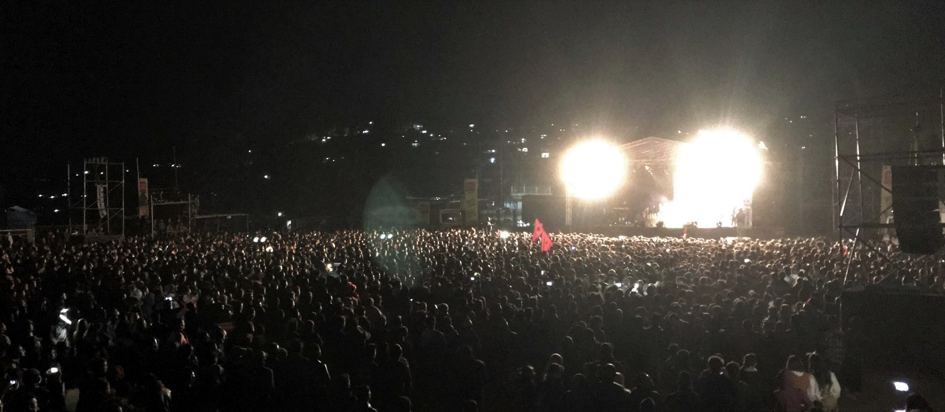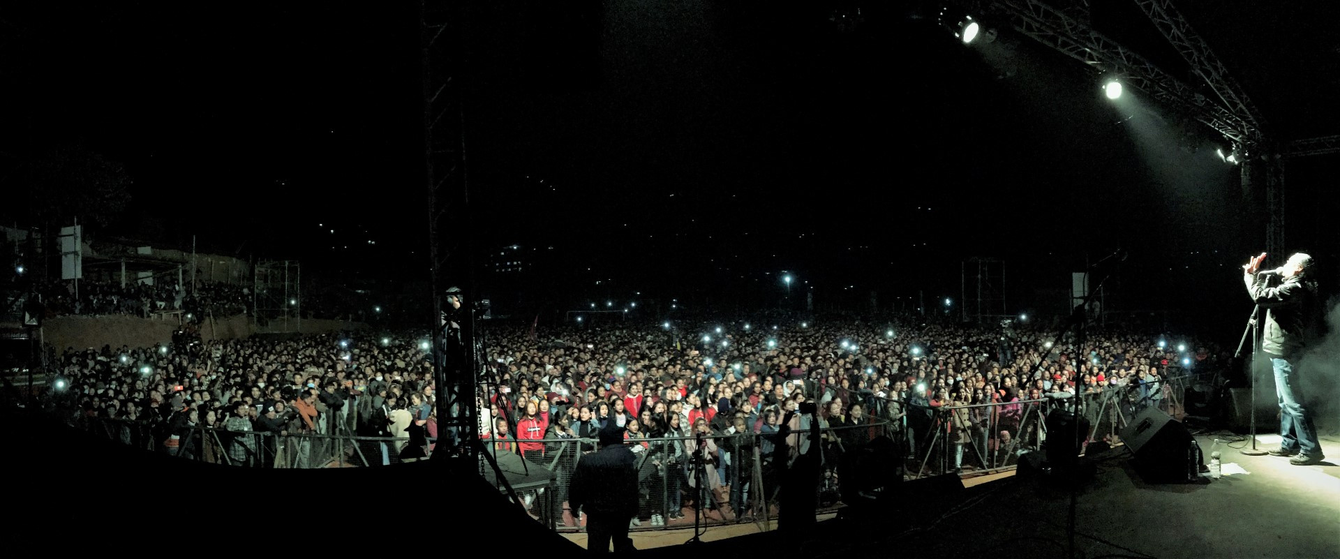कन्सर्टमा पाँचथर मात्र नभएर छरछिमेकका इलाम, तेह्रथुमहुँदै उत्तरतिरको ताप्लेजुङदेखिका दर्शक ओइरिएका थिए। त्यसैगरि मोटरमा झण्डै छ घन्टा परको झापादेखि आइपुगेका फाटफुट दर्शक पनि मैदानमा देखिन्थे। फुटबल मैदानमै तयार पारिएको मञ्च अगाडि उभिनेदेखि लिएर छेउका ढिस्काहरुमा बनाइएको अस्थायी प्यारापिटमा बस्नेसम्मका गरेर झण्डै छ हजार दर्शक अटाएका देखिन्थे।
