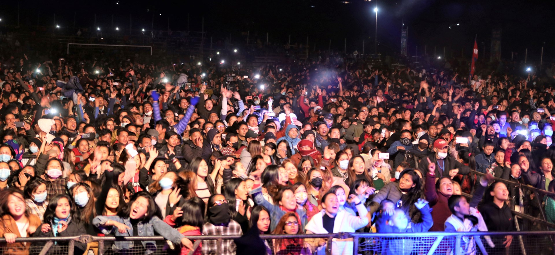 पाँचथर सदरमुकामस्थित फिदिम माध्यमिक विद्यालयको खेल मैदानभरि भेला भएका दर्शकको भीँडले त्यसपछि नेपथ्यसँग मिलेर गाएको थियो–