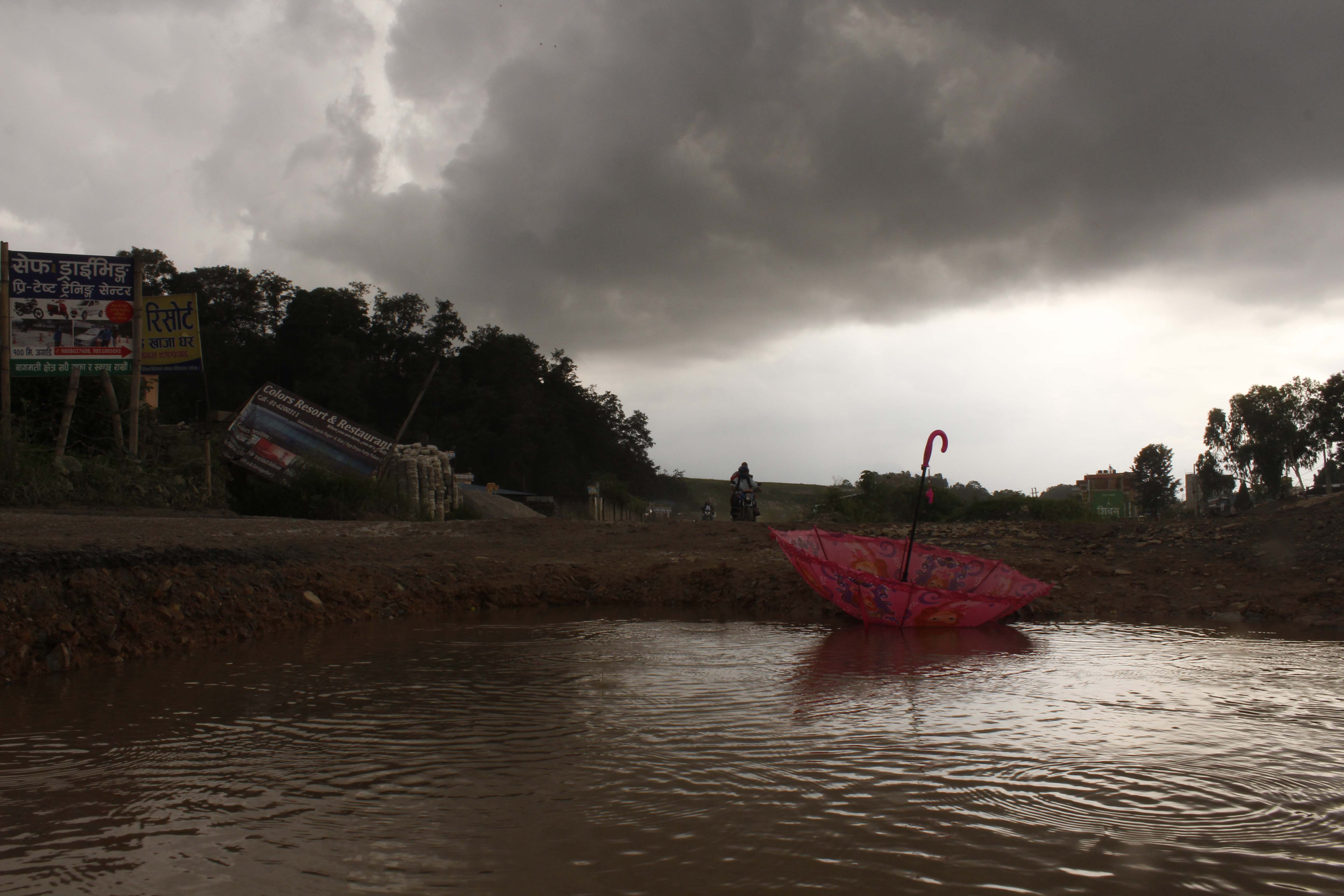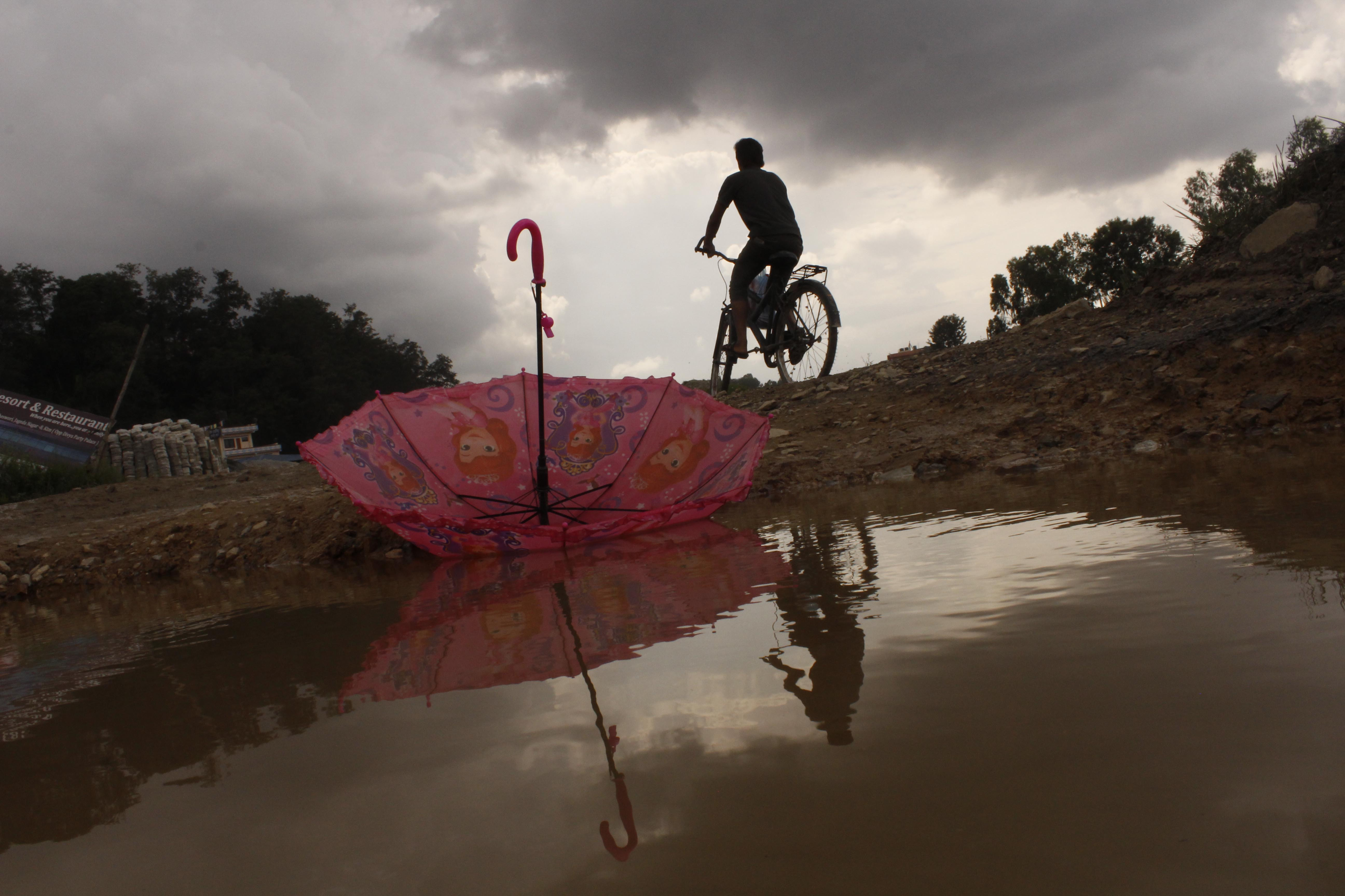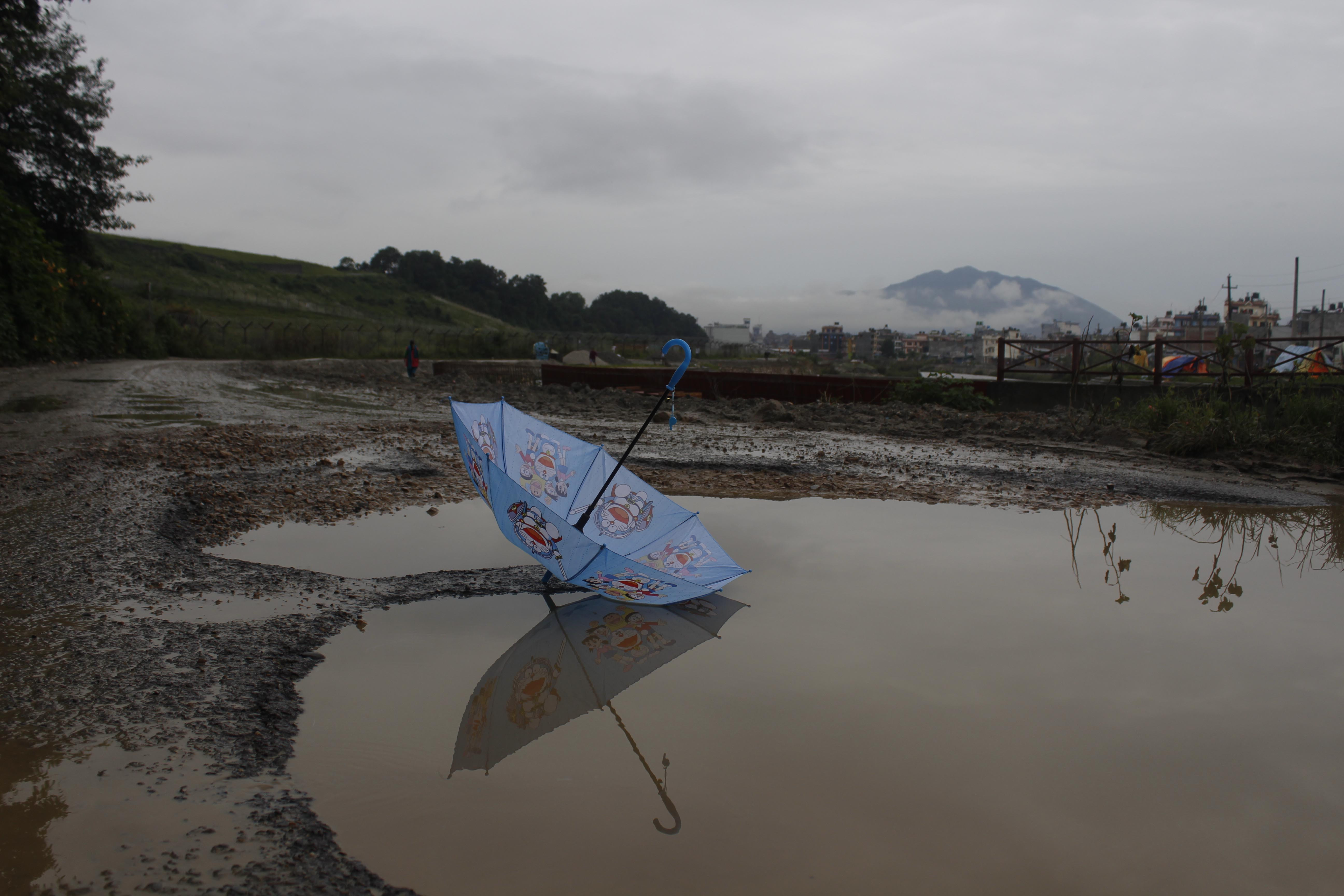 मैले त्यही बेला आफ्नो मोबाइलबाट उनी रमाउँदै गरेका केही दृश्य कैद गरेँ। बच्चाहरूको त्यो रमाइलो अभिव्यक्ति– छाता, माटो, भुइँ र पानीमा परेको त्यो किरण।