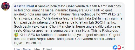 उदाहरणका लागि युट्यूबको कमेन्टमा प्रियंका भुसाल नामकी एक प्रयोगकर्ताले कस्तो खालको गीत हो यो ? भनेर प्रश्न गरेकी छन्।