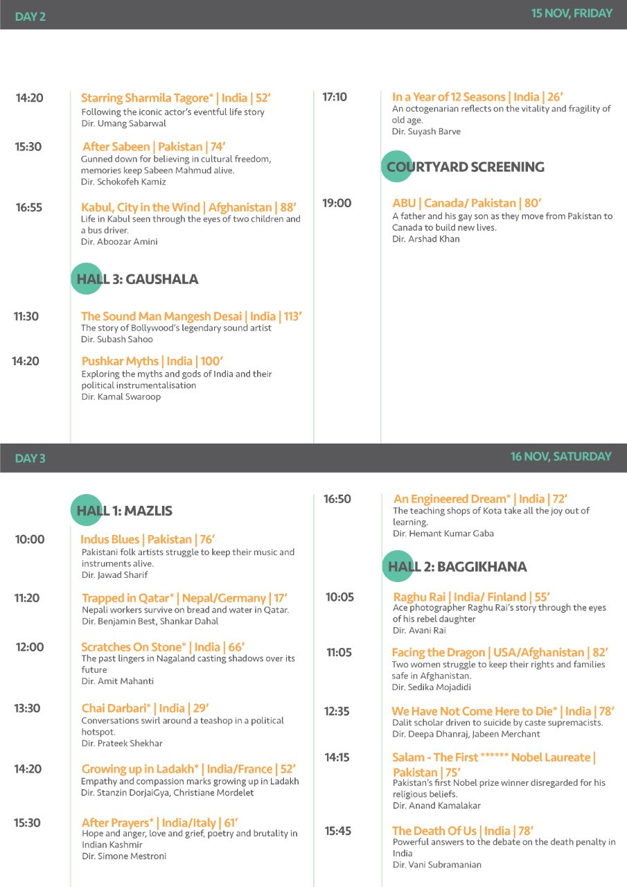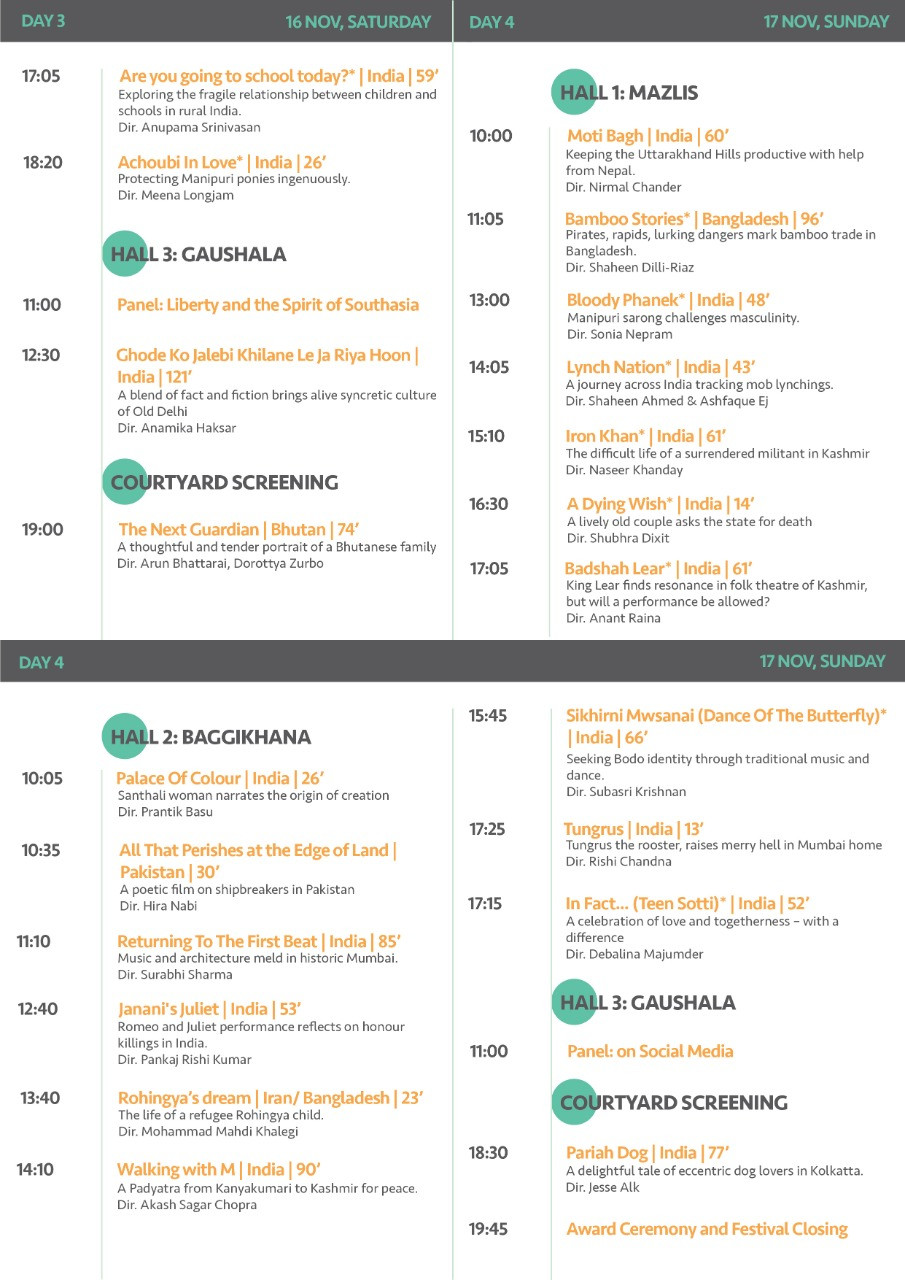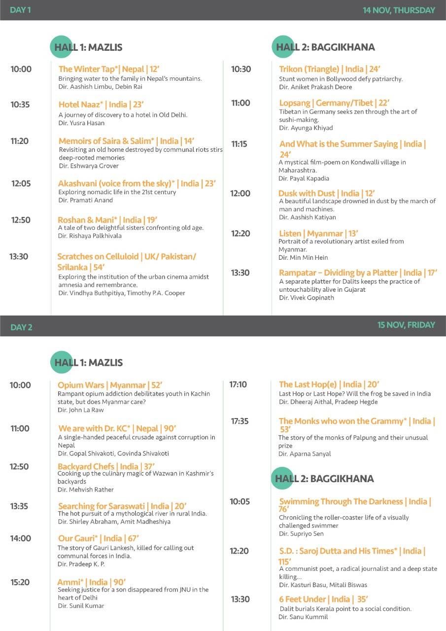 महोत्सवको पहिलो दिन ‘स्टुडेन्ट फिल्म’ अन्तर्गत छनोटमा परेका १२ वृत्तचित्र प्रदर्शन हुने जनाइएकाे छ। प्रत्येक वृत्तचित्रकाे टिकट शुल्क ५० रुपैयाँ तोकिएकाे छ।
