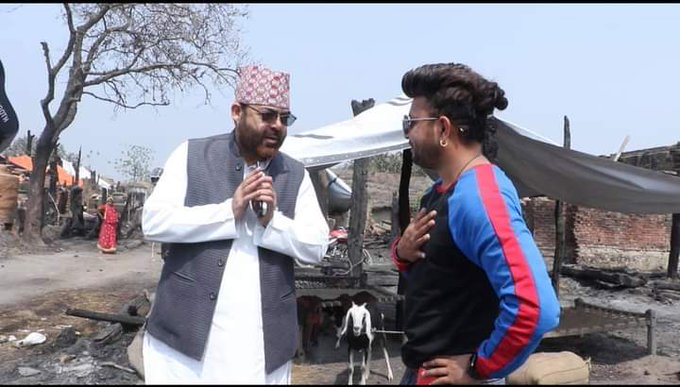 गायक दुर्गेश थापा र सम्राट चौलागाईंले आगलागीमा परेका परिवारलाई राहत वितरण गरेका छन्।