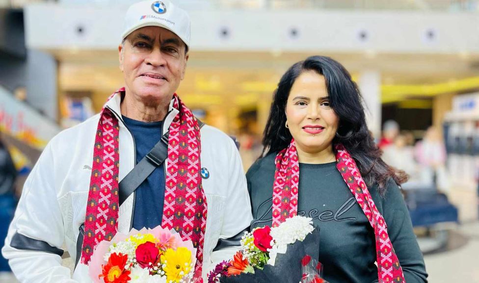 उनी दक्षिण भारतीय अभिनेत्रीसमेत रहेकी श्रीमती कल्याणीसहित आइतबार बेलुका काठमाडौं आइपुगेका हुन्।