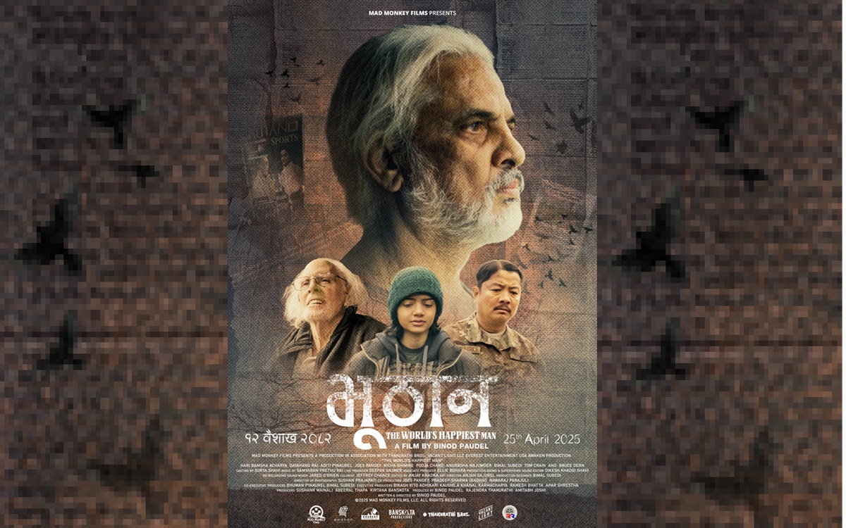अंग्रेजीमा 'द वर्ल्डस् ह्याप्पिएस्ट म्यान' नाम रहेको 'भूठान' को मुख्य भूमिकामा हरिवंश आचार्यसहित दयाहाङ राई, अनुराधा मजुमदार, पूजा चन्द (लामा), ऋचा घिमिरे, जोएस पाण्डे, अदिति प्याकुरेल, टम क्रेन, विमल सुवेदी साथै हलिउडका विश्वविख्यात अभिनेता ब्रुस डर्नले पनि विशेष भूमिकामा अभिनय गरेका छन्।