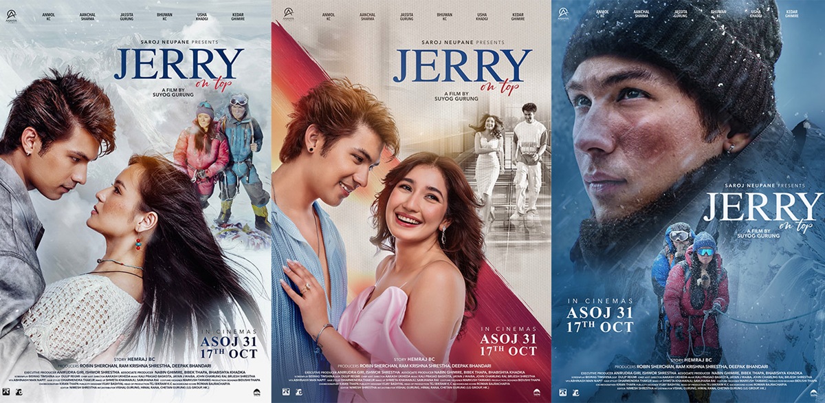 पोस्टरमा समावेश पृष्ठभूमिले फिल्मको कथाबारे संकेत गरेको छ, जहाँ अनमोल र जसिता हिमाल आरोहीको अवतारमा प्रस्तुत छन् भने अर्को पोस्टरमा अनमोल दुवै अभिनेत्रीसँग रोमान्टिक अवतारमा छन्। पोस्टरले 'जेरी अन टप' मा त्रिकोणात्मक प्रेमकथा रहेको संकेत गर्छ।