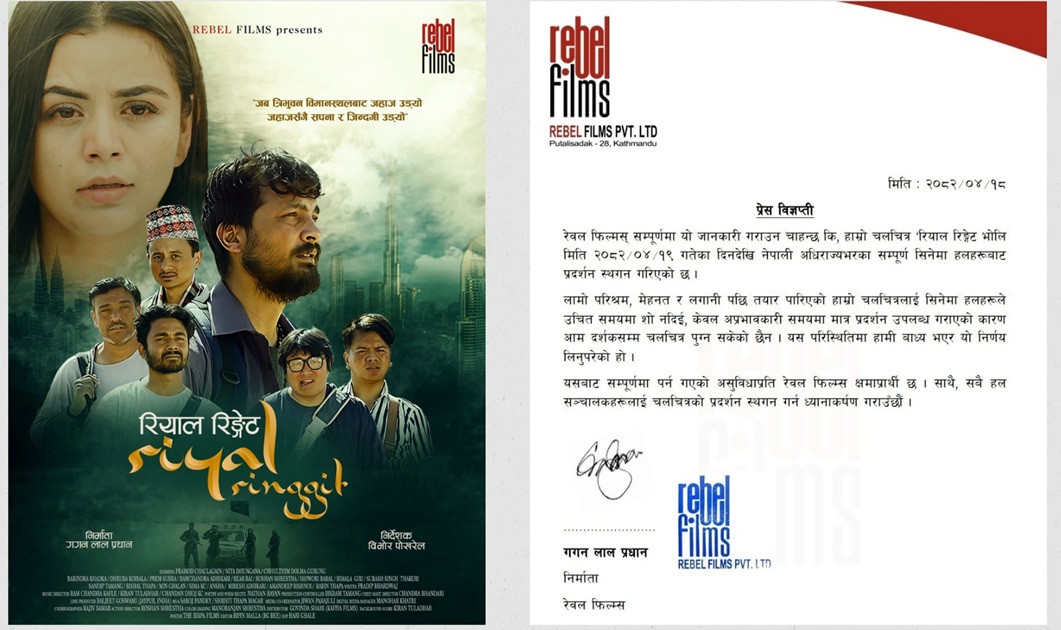 निर्माण ब्यानर रेबेल फिल्मस् प्रा.लिले आइतबार प्रेस विज्ञप्ती जारी गर्दै यो निर्णयबारे जानकारी दिएको हो।