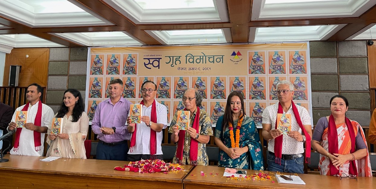 पोखरामा आयोजित गृह विमोचन समारोहमा साहित्यकारहरू सरुभक्त, तीर्थ श्रेष्ठ, गनेस पौडेल, रंगकर्मी अनुप पौडेल, दिया मास्के लगायतले संयुक्त रूपमा पुस्तकको विमोचन गरेका हुन्।