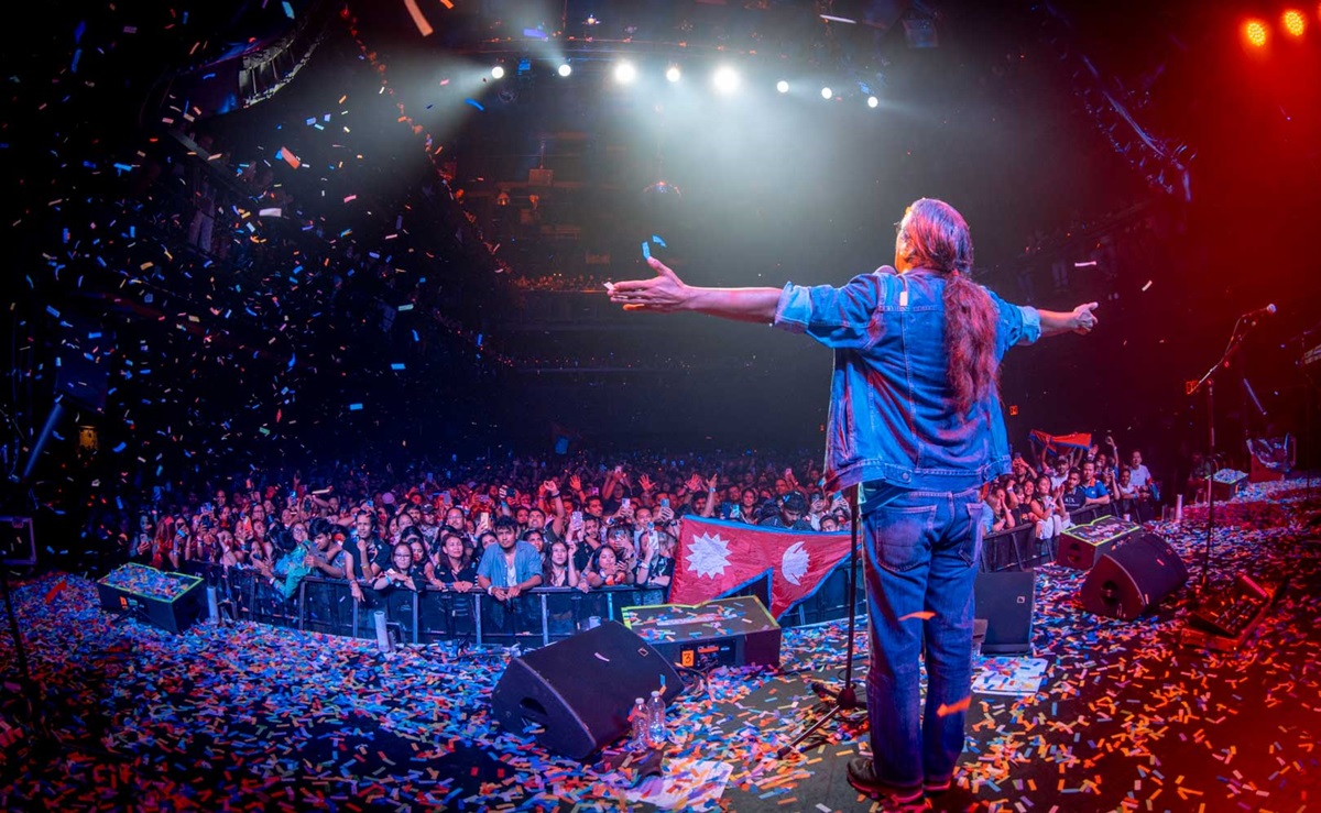 धुन बज्दा बज्दैको क्षण उनले बीचैमा दुवै हात उचाले र अनुरोध गरे, ‘संसारभर फैलिएर रहेका नेपालीभाषीहरू एक भएर बसौँ है।’ प्रतिउत्तरमा टनाटन भरिएको ‘टर्मिनल फाइभ’ हलै थर्कमान हुनेगरी दर्शकले समर्थन जनाए।