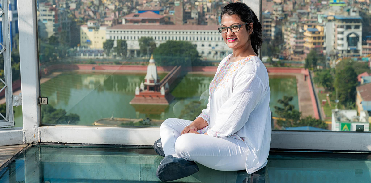 स्काईवाकको करिब २५ तला अग्लो टावर चढेर काठमाडौं नियालिरहँदा निलो गगनले मलाई अँगाल्न आँटे जस्तो काउकुती लागिरहेको थियो। हामी मौन संवादमा थियौं। काठमाडौंमै हुर्केर पनि काठमाडौं नचिनेको मलाई सबै सबै नियाल्न लगाइरहेथ्यो। वल्लो कुनादेखि पल्लो कुनासम्म। निलो आकाशमा पनि सेता बादलहरू। त्यै बादलुको पहिरन जस्तै सेताम्मे भएर स्काईवाक उक्लिएकी म। कस्तो मिठो संयोग!
