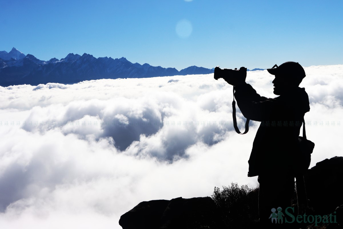 बर्खामा चौरी गोठ राख्ने खर्कमा हाम्रो बास भयो। बासको व्यवस्था गर्दागर्दै बेलुकी पखको गौरीशंकरको दृश्यले मन लोभ्यायो। बादलसँग लुकामारी गर्दै गौरीशंकरले हामीलाई घण्टौंसम्म जिस्काइरह्यो। जति जति अघि बढ्यो उत्ति नै नयाँ नयाँ दृश्यले मेरो ध्यान तानिरहन्थ्यो। साथमा क्यामेरा भएपछि जे देखे पनि खिचूँ खिचूँ लाग्ने। पाइला पाइलामा नयाँ दृश्यले मन थाम्नै नसक्ने। हिउँद नलाग्दै हिउँ, फुल्न लागेका गुराँस अनि मग्मगाउने सुनपाती धुपीले शरीर र मनलाई आनन्द र शितल तुलाउँथे। चराको चिरबिर चिरबिर आवाजले हिँड्नलाई बल पुग्थ्यो। आँखै अगाडि टल्किने सेताम्मे हिमालले त्यसैतर्फ मन, क्यामेरा तानिरहन्थ्यो। कतिपय ठाउँमा भने आँखाले भन्दा खुट्टालाई उकालो थाहा हुन्थ्यो। उकालोमा पाइला अघि होइन पछि सथ्र्यो। तर कतिबेला थोबो डाँडा पुगेला भन्ने उत्साहले जबरजस्ती अघि बढिरह्यौं। बाटोमा बाटो मात्र होइन। सयौं वर्षअघि च्छोदोर्मो म्हेमेले निर्माण गरिएका लहरे माने र गुम्बाको अवशेषले पनि यस स्थान ऐतिहासिक सावित हुँदै गएको रहेछ। ठाउँ ठाउँमा भेटिएका र देखिएका प्राकृतिक सम्पदाले पनि यस स्थान महत्वपूर्ण र पवित्र महसुस हुन्थ्यो।