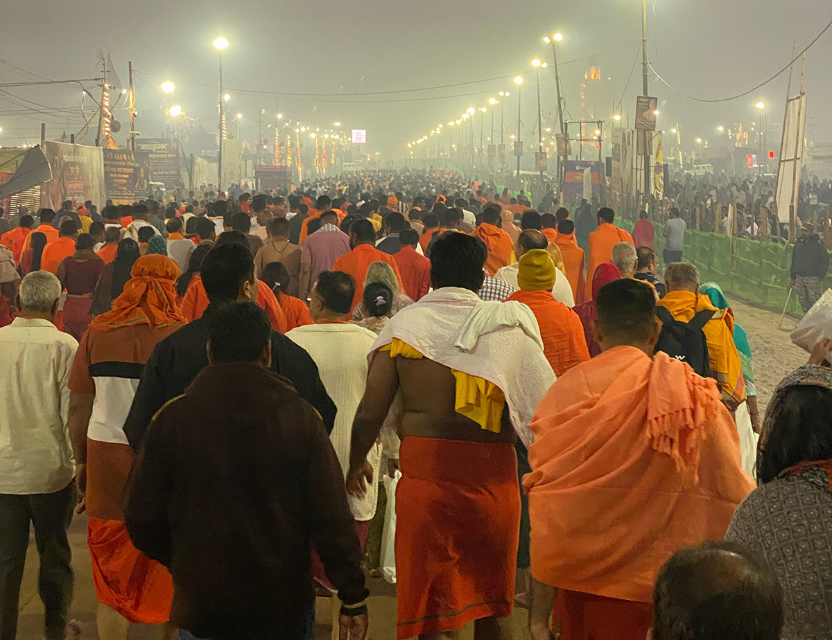 दिनभरि कुम्भ स्थानहरू घुम्यौं। विभिन्न आश्रमहरूको अवलोकन गर्यौं। प्रवचन सुन्यौं। साँझपख कुम्भ स्थान हेर्न मिल्ने पुलमाथि गएर विशाल क्षेत्र हेर्यौं। ओहो यहाँ पानीको व्यवस्था हेरौं, बत्तीको हेरौं, शौचालय हेरौं। सडक हेरौं, स्नान स्थान हेरौं, सुरक्षा हेरौं। त्यो पलहरू शब्दमा कैद हुन सक्दैनन् र सकिँदैनन्। कसरी सम्भव भयो होला। कसरी व्यवस्थित गरिएको होला। हाम्रो कल्पना भन्दा बाहिरको सपना थियो।