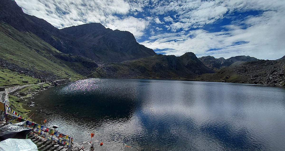 पर बत्ती बलेको देखिएको छ तर जति हिँड्दा पनि भेटिँदैन। थकानले हिँड्न सक्ने अवस्था छैन। टर्चलाइट, मोबाइलको लाइटले बाटो पछ्याउँदै छौं। ८:३० बजे हामी गन्तव्य पुग्यौं। तपाईं र म अहिले ४३८० मिटरमाथि रसुवा जिल्लामा अवस्थित गोसाइँकुण्डमा आइपुग्यौं।