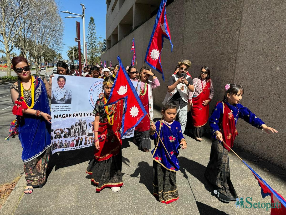 झण्डै २ घण्टा चल्ने नेपाल फेस्टिबल पर्थ २०२४ सांस्कृतिक परेडमा नेपाली भेषभुषासहित संस्कृति झल्काउने पहिरनमा मानिसहरू उपस्थित भएका छन्।