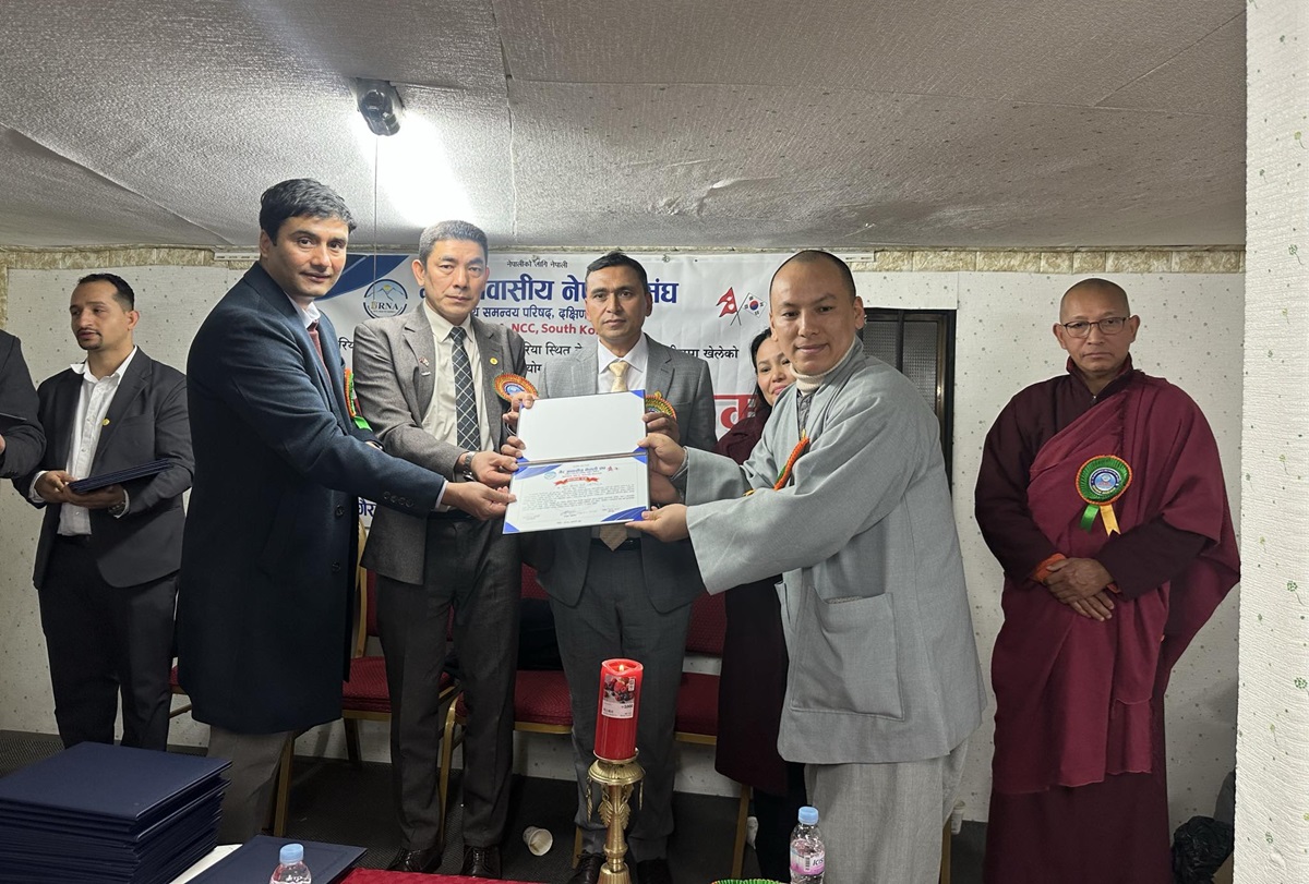 गैरआवासीय नेपाली संघ राष्ट्रिय समन्वय परिषद दक्षिण कोरियाले कोरियाली नयाँ वर्षको अवसरमा कोरियाको राजधानी सउलमा आयोजित कार्यक्रममा नेपाली समुदायलाई सहजीकरण गर्ने व्यक्तिहरूलाई सम्मान गरेको छ।