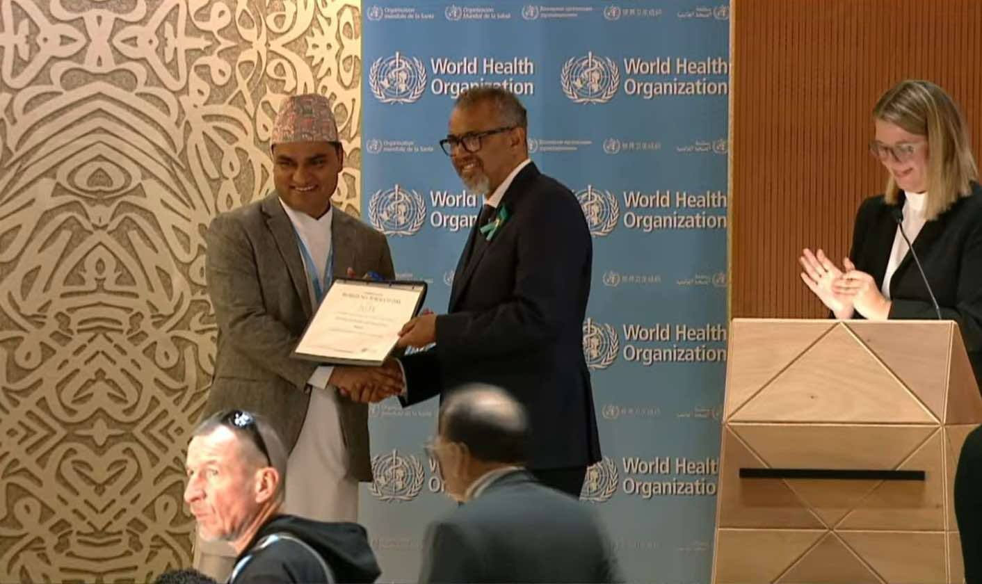सुर्तीजन्य पदार्थ नियन्त्रणमा महत्वपूर्ण योगदान पुर्याएको भन्दै नेपाललाई विश्व स्वास्थ्य संगठनले पुरस्कृत गरेको छ।