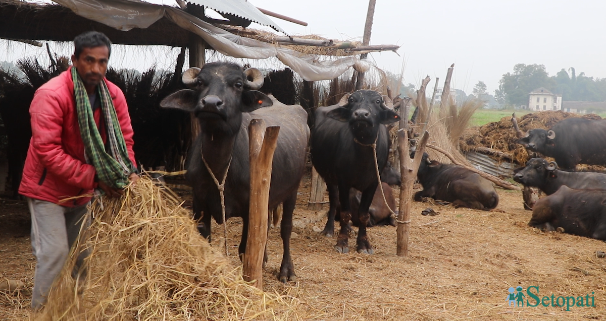 दाङको राजपुर गाउँपालिका–४का टीकाराम यादव परिवारको पुर्ख्यौली पेसामै रमाइरहेका थिए। उनीहरूका बाजेका पालमा पनि चारपाँचवटा भैंसी जहिल्यै हुन्थे। तिनै भैंसीबाट हुने आम्दानीले परिवारको गुजारा चल्थ्यो। दूध, दही र घिउ बेच्थे। आम्दानी ठिकै थियो। व्यवहार चलेकै थियो, ठूलो दुःख थिएन।