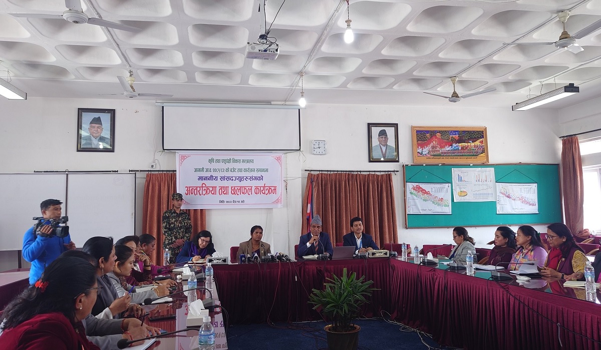 त्यस्तै, उपस्थित सांसदहरूले कृषि कार्यालयमा कर्मचारीको अभाव भएको बताउँदै आवश्यक कर्मचारी पूर्ति गर्न पनि सुझाव दिएका छन्।