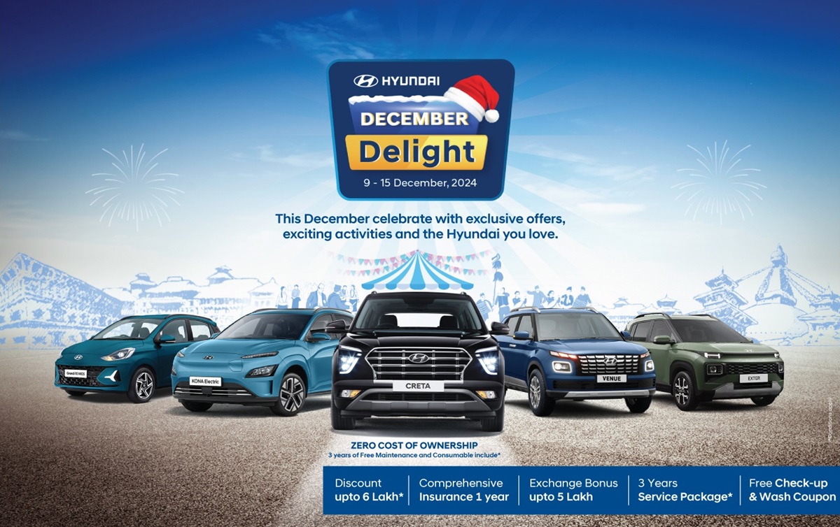 नेपालमा हुन्डाई गाडीका आधिकारिक वितरक लक्ष्मी इन्टरकन्टिनेन्टलले डिसेम्बर ९, २०२४ देखि 'डिसेम्बर डिलाइट' अभियान सुरू गरेको छ।