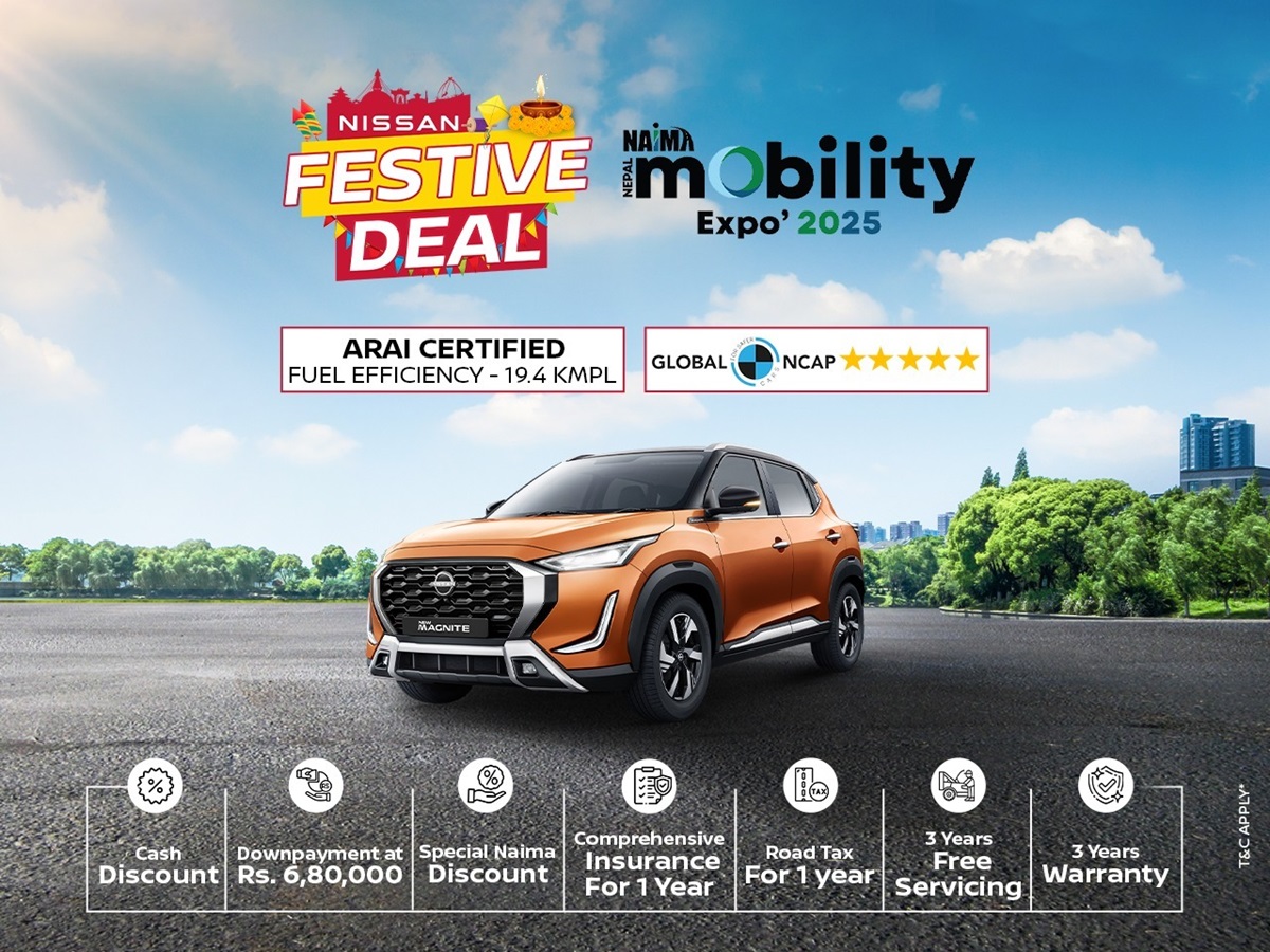 निसान फेस्टिभ डिल योजनाअन्तर्गत, निसान म्याग्नेट बुक गर्ने ग्राहकहरूले यस्ता लाभहरू प्राप्त गर्नेछन्।