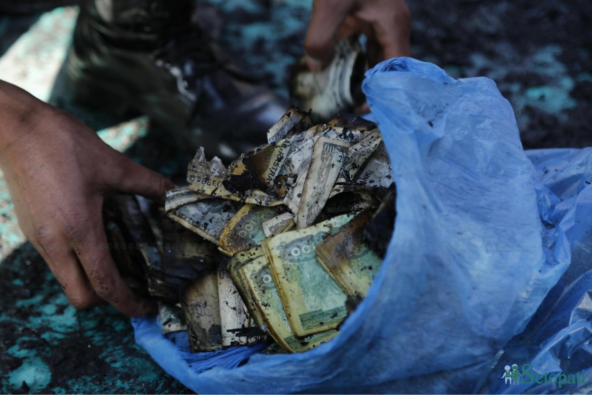 आगो निभेपछि कतिपय नेता, व्यवसायीको घरमा जलेको अवस्थामा पैसा फेला परेको छ। कतिपयको घरमा विदेशी मुद्रा पनि पाइएको छ।