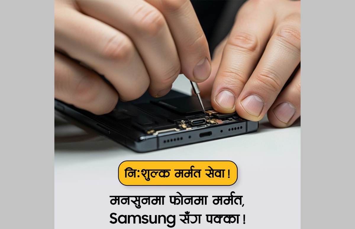 यो ग्राहक सेवा अभियान २०२५ अगस्ट २४ सम्म सञ्चालन हुनेछ जसअन्तर्गत सामसङ प्रयोगकर्ताहरूले वारेन्टी भए/नभएको कुराले फरक नपारी, अधिकृत सामसङ सेवा केन्द्रमा गएर नुक्सान भएको चार्जिङ पोर्ट निःशुल्क परिवर्तन गराउन सक्नेछन्।