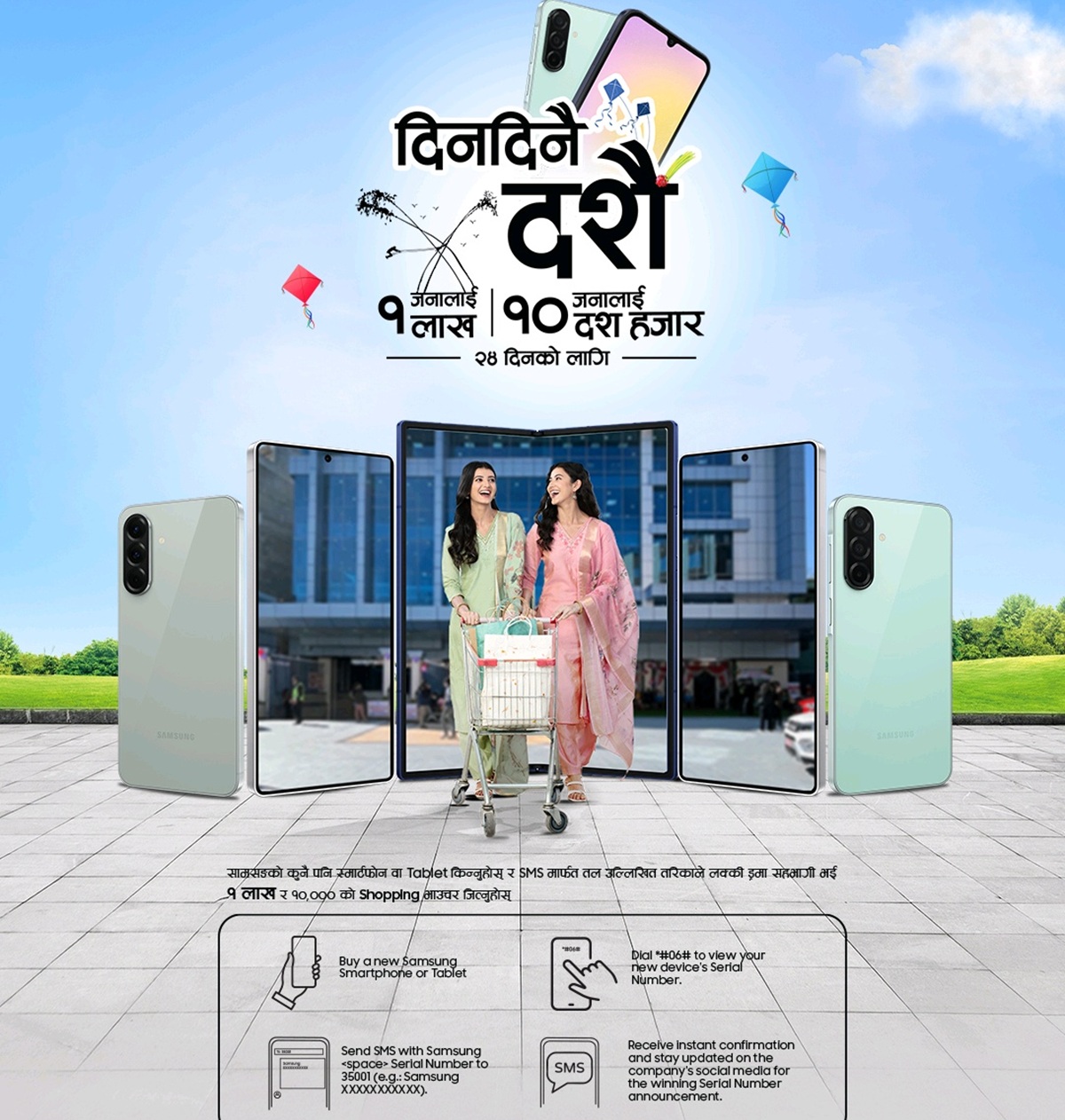 यो अफर भदौ १६ देखि असोज १२ गतेसम्म मान्य हुनेछ। यस अवधिमा नयाँ सामसङ स्मार्टफोन वा ट्याबलेट खरिद गर्ने ग्राहकले दैनिक उपहार जित्ने अवसर पाउनेछन्, जसले चाडपर्वको उत्सवलाई अझ विशेष बनाउनेछ।
