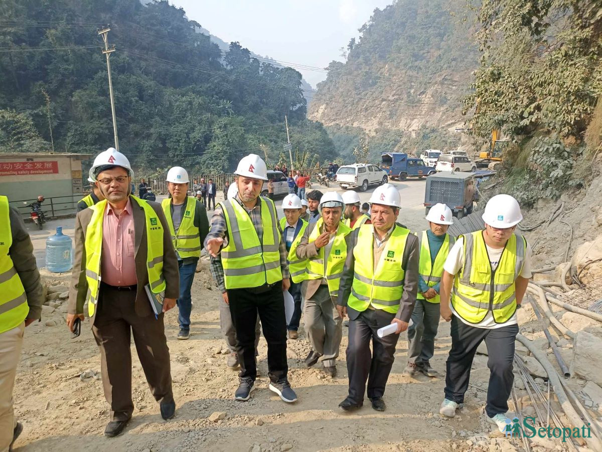 निरीक्षणमा सडक विभागका महानिर्देशक सुशिलबाबु ढकालले सुरुङमार्गको कामले गती लिन नसकेको स्विकार गरे। उनले सुरुङमार्ग नेपालका लागि नयाँ भएकोले अहिले बाहिरी डिजाइन स्विकृत गरेर काम भइरहेको बताए।