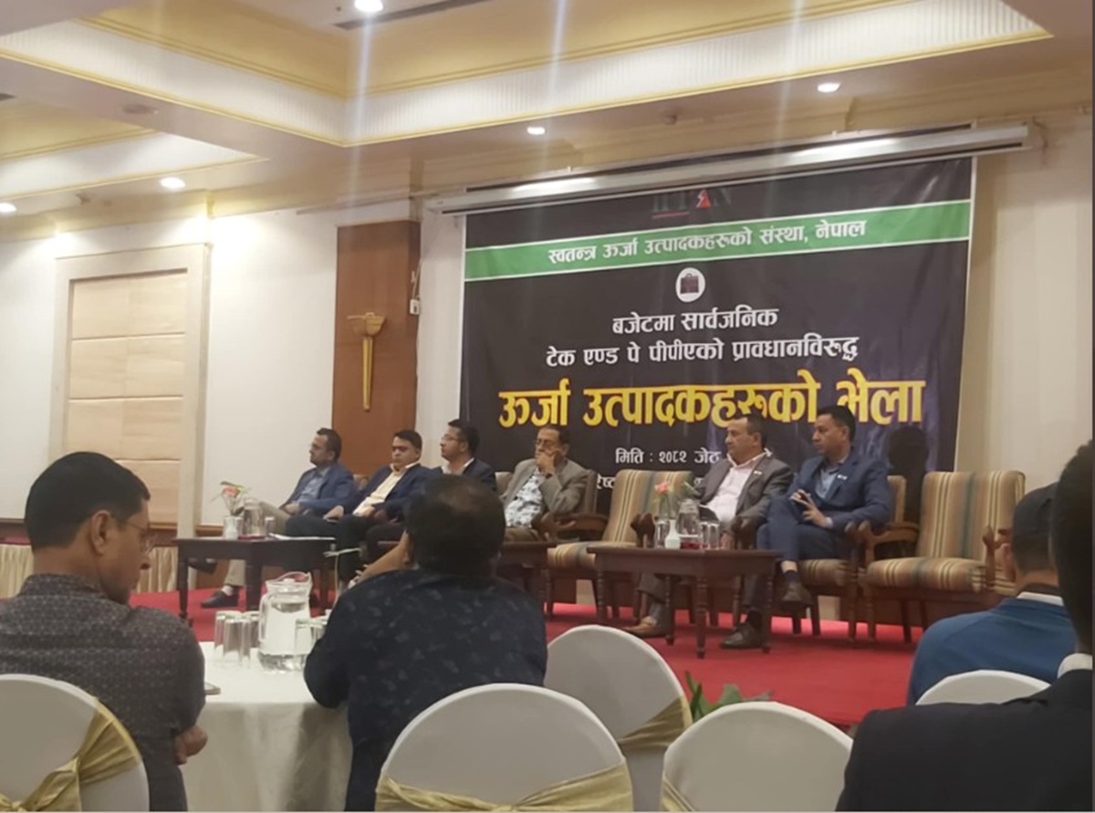 ‘सरकार टेक एण्ड पे गलत शब्द फिर्ता लिउ’ भन्दै ऊर्जा उत्पादकहरूले विरोध जनाएका हुन्।