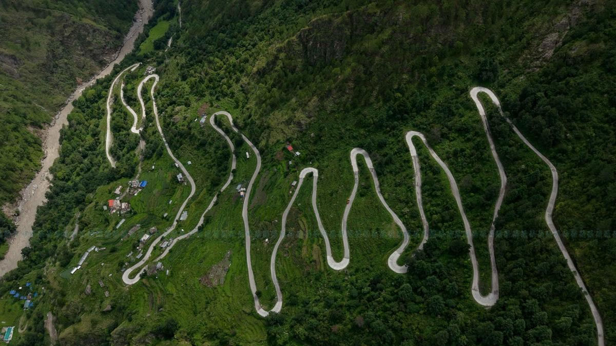 बर्खाको हरियालीका बीचबीचमा घुम्ती सडक अझै आकर्षक देखिन्छ।
