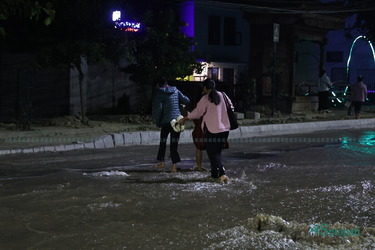 काठमाडौंको नयाँ बानेश्वर–तीनकुने सडकखण्डमा खानेपानीको पाइप फुटेर सडक जलमग्न भएको छ।