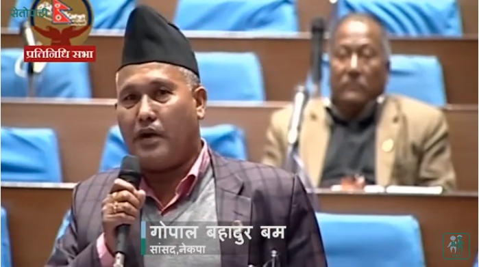 प्रतिनिधी सभामा नेपाल कम्युनिष्ट पार्टीका सांसद गोपालबहादुर बमले छाउगोठ भत्काइँदा कर्णालीका महिला स्याउला ओढेर बसेको दावी गरेका छन्। महिलाको अवस्था कस्तो छ भनेर बुझ्न सरकार तथा अधिकारकर्मीसँग उनले आग्रह गरे।