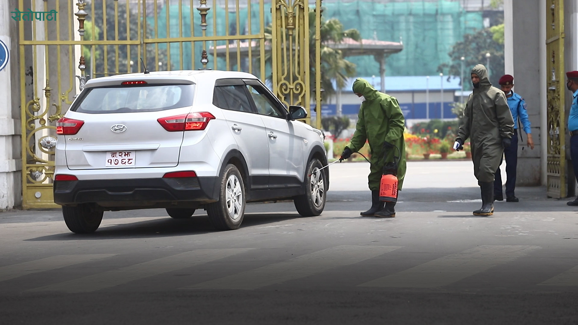 सिंहदरबार छिर्ने गाडीमा डिसइन्फेक्सन गर्न थालिएको छ। त्यस्तै सिंहदरबार छिर्ने जो सुकैले पनि अनिवार्य शरिरको तापक्रम मापन गराउनुपर्ने भएको छ। नेपाली सेनाले सिंहदरबारको मुख्य गेटबाट छिर्ने गाडीहरुमा डिसइन्फेक्सन गर्न थालेको हो। त्यस्तै ज्वरो नाप्न समेत सेनाले कर्मचारी खटाएको छ। हेर्नुहोस् भिडिओ -