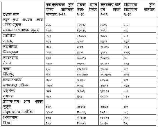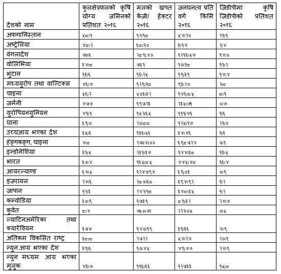 हुन त परम्परादेखि नै नेपाल कृषि प्रधान देशको रुपमा परिचित छ। जिडिपीमा यसको योगदान २६.५ % छ भने ६०.४ प्रतिशत जनता यसमा आवद्ध भएको हुँदा यसो भनिएको हो जस्तो लाग्छ। तर अब देशलाई कृषि प्रधान भन्ने कि नभन्ने? किन भने यतिकै को हाराहारीमा अर्थतन्त्रमा योगदान विप्रेषणको पनि छ र कृषिको योगदान जुन रुपमा घट्दै गएको छ, त्यही रुपमा कृषिमा आधारित उत्पादन मुलक उद्योगहरुको योगदान बढेको देखिदैन।