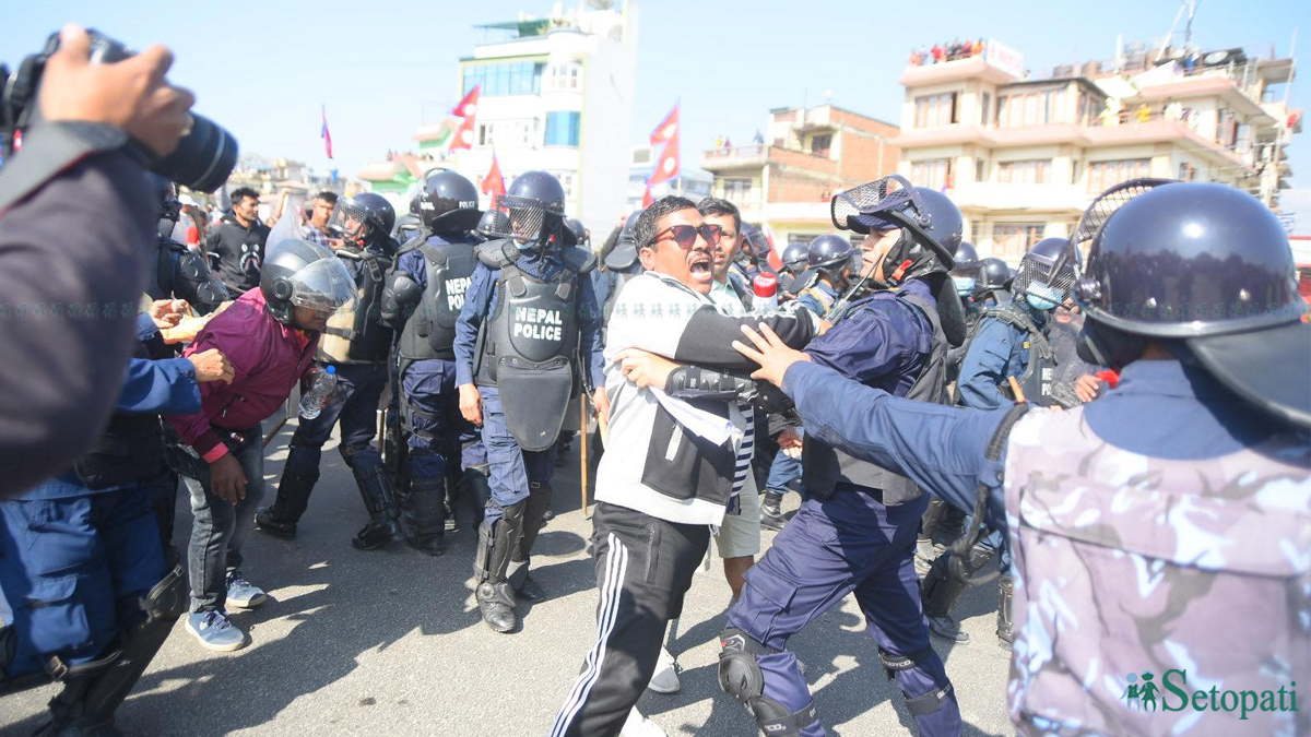 दुई समूहबीच झडप हुन नदिन प्रहरीले युवा संघ तथा अनेरास्ववियु कार्यकर्तालाई कुलेश्वरतर्फ पठाएको छ। प्रदर्शनकारीहरूले पानीका बोत्तलले प्रहरीलाई प्रहार गरेका थिए।