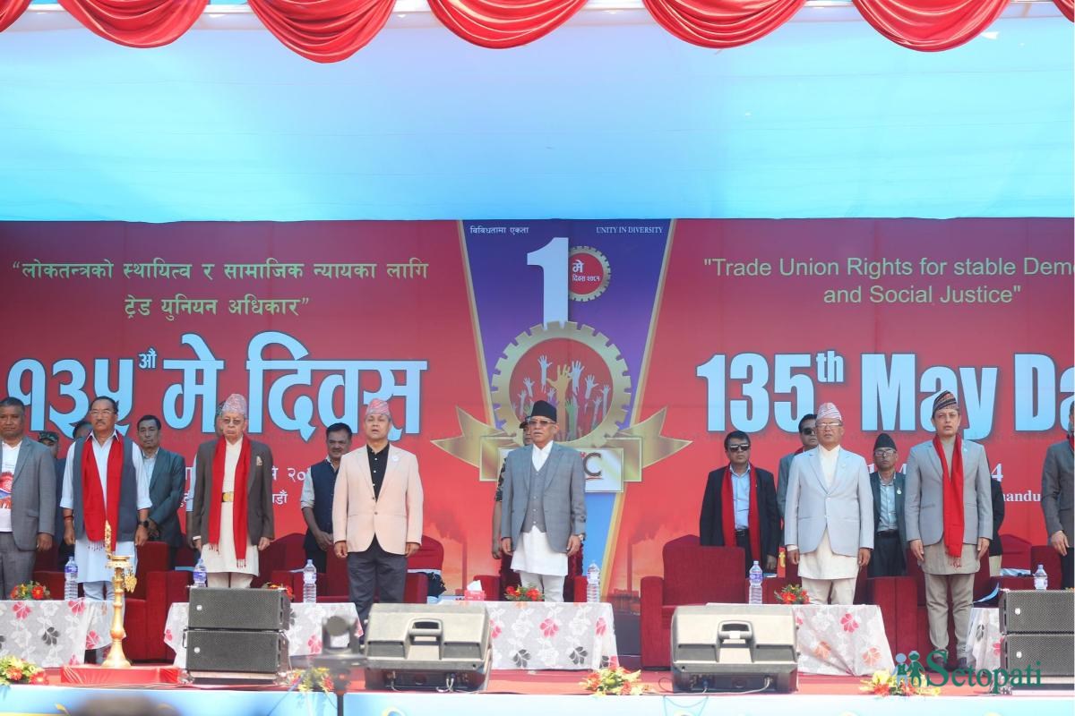 श्रमिक दिवसको अवसरमा संयुक्त ट्रेड युनियन समन्वय समितिले काठमाडौंको भृकुटीमण्डपमा विशेष कार्यक्रम भइरहेको छ।