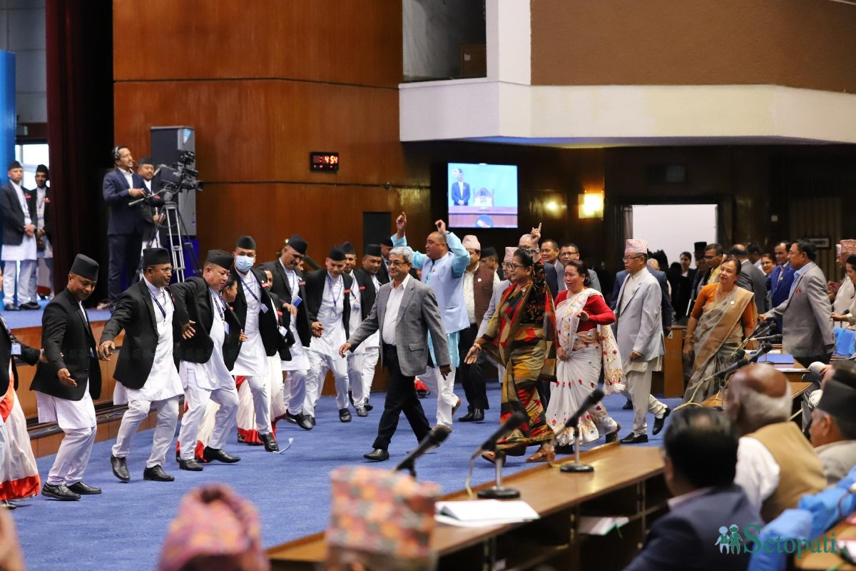 अवरोधकै बीच  सभामुख देवराज घिमिरेले राष्ट्रपति कार्यालयबाट प्राप्त पत्र पढेर सुनाउन खोजेका थिए। उनले पत्र पढेर सुनाउन खोजेपछि कांग्रेसका सांसदहरूले रोष्ट्रम घेराउ गरेका थिए।