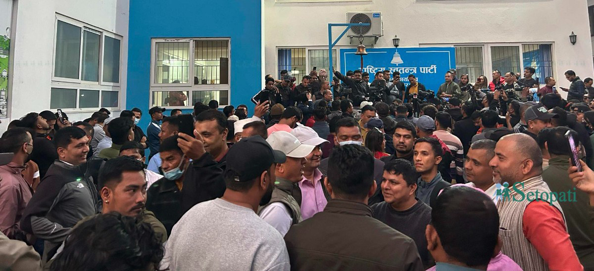 राष्ट्रिय स्वतन्त्र पार्टी (रास्वपा) सभापति रवि लामिछानेविरूद्ध पक्राउ पुर्जी जारी भएपछि केन्द्रीय कार्यालयमा भिड लागेको छ।