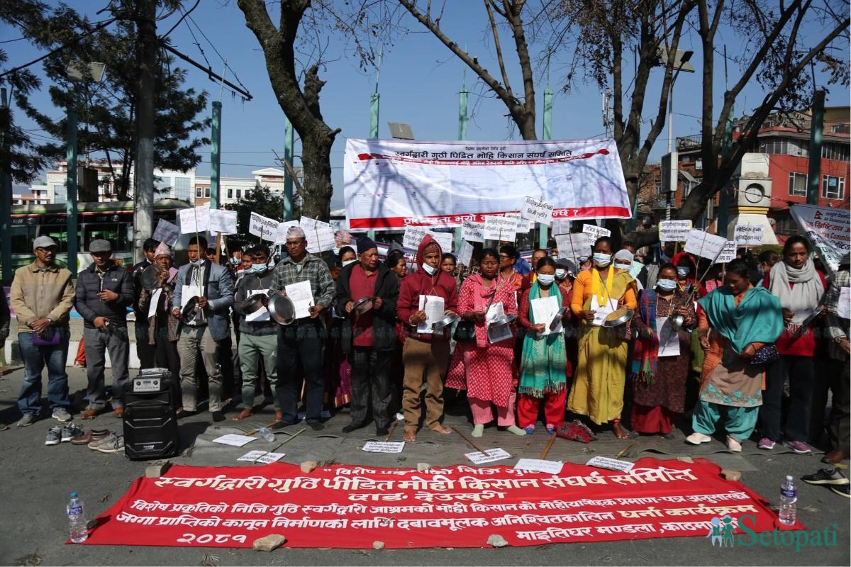 पुस्तौंदेखि खेतिपाती गर्दै आएको जग्गाको स्वामित्व स्वर्गद्वारी गुठीको नाममा पुगेपछि पीडितहरू सरकारलाई सुनाउन दाङबाट काठमाडौं आएका थिए।
