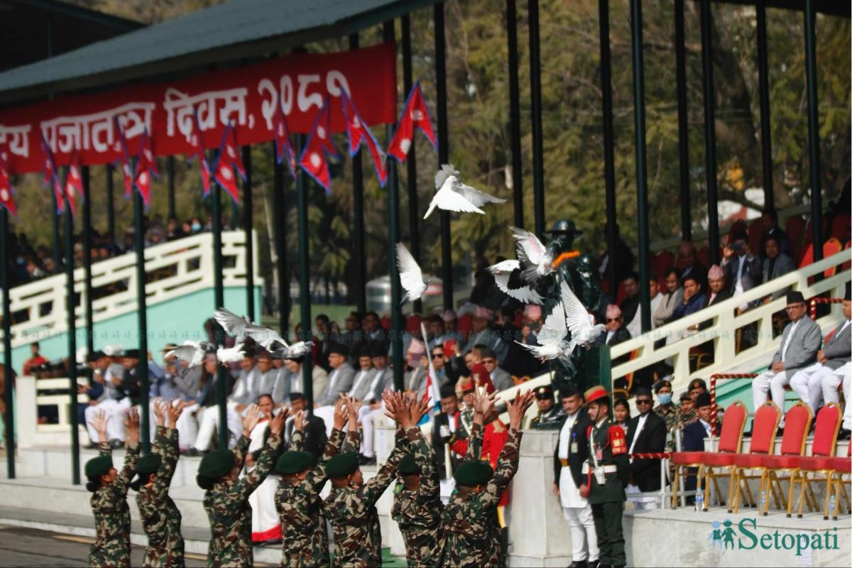 समारोहमा स्वतन्त्रताको प्रतिक परेवा उडाइएको थियो।