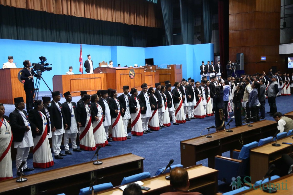 विपक्षी दल राप्रपाका सांसदहरू भने उठेर विरोध गरिरहेका छन्।