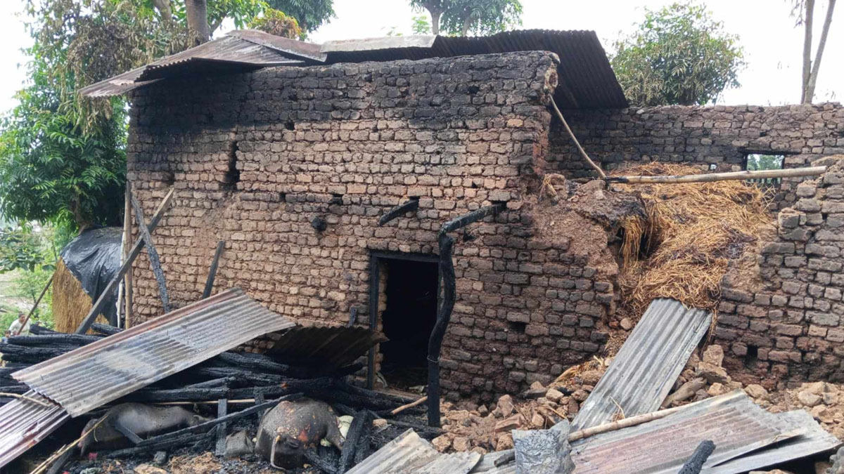 आगलागीबाट गोठभित्र बाँधिएका दुईवटा भैंसी, तीनवटा खसी, एकवटा बाख्रा र १० वटा कुखुरा जलेर मरेका छन्।