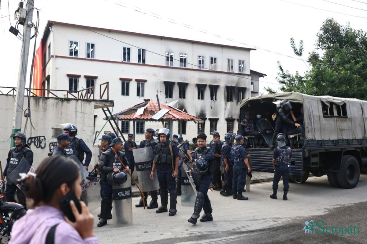 बिहानैदेखि नेपाल प्रहरीको बाक्लो उपस्थिती छ। कार्यालय परिसर र आसपास प्रहरी परिचालित छ।