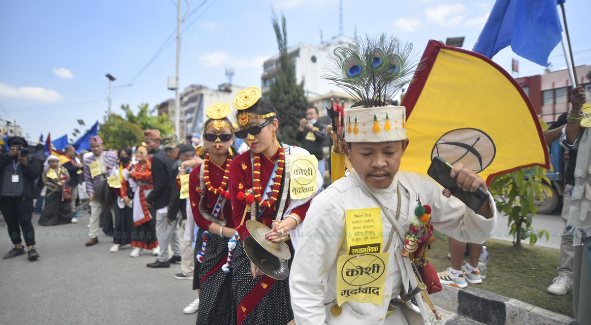 उँभौलीको अवसरमा आज काठमाडौंमा भने कोशी नामको विरोध भयो। प्रदेश १ को नाम फागुन १७ गते कोशी राखेपछि विरोध भइरहेको छ।