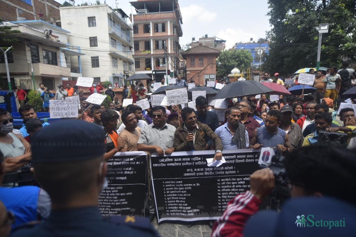 ‘नजिकका अन्य बिजनेश कम्लेक्सहरूले यसलाई रोक्न खोजेको हो। हामीले मानेनौं। महानगरपालिकाले सबै फुटपाथ पनि हटाउन लागेको छ। पार्किङ पनि हटाउन लागेको छ भनेकाले उहाँहरू आउनुभएको छ,’ मेयर महर्जनले भने, ‘उहाँहरू स्थानीयहरू पनि हुनुहुन्न। एक जना पनि स्थानीय हैनन्।’