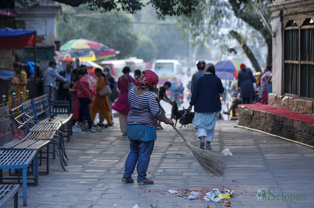 उनले पनि यसरी काम गरेको तीन वर्ष भयो। पार्क सफासुग्घर गर्ने, मन्दिरको पाला सफा गर्ने, रङ लगाउने काम गर्छिन्। काम भन्नु वर्षभरिमा सय दिन हो। आजकाल फुर्सदमा छिन्।